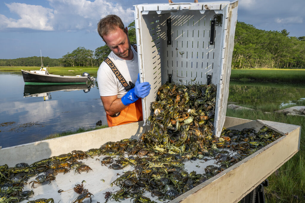 One example is Shell & Claw in York, Maine. Founder Mike Masi, a former marine biology teacher, saw the devastation caused by invasive green crabs and decided to build a market for them. By identifying exactly when these crabs molt, he’s created a gourmet market for soft-shell green crabs in New England restaurants. Another company I’ve worked closely with is Cold Current Kelp, where a former attorney and a biologist are farming kelp to create high-performance skincare.
