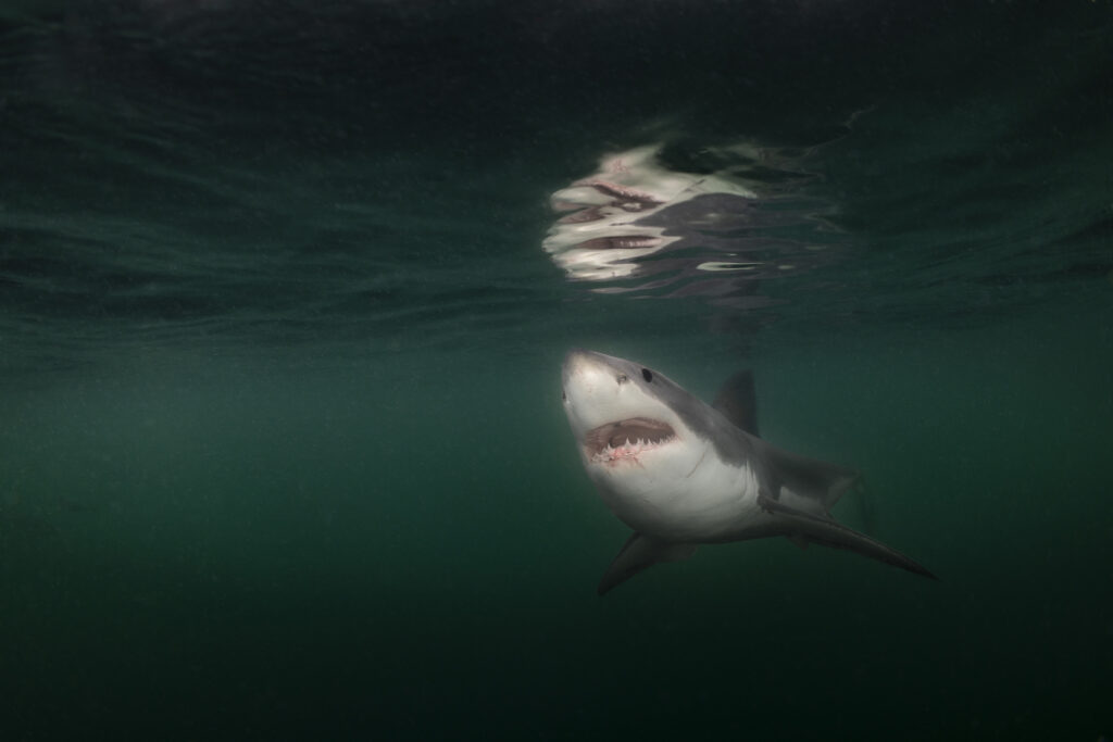The ocean is also showing its own capacity to rebuild. One of the most powerful examples of resilience I witnessed was the recovery of the Great White shark. After decades of conservation efforts like the Marine Mammal Protection Act, we are finally seeing the return of these apex predators. This year, I captured the first underwater photograph of a Great White in Maine. It was an inspiring moment for myself and the ecosystem – a juvenile 10-foot shark is a significant indicator of a restoring ecosystem.